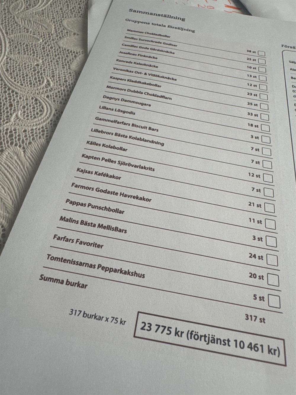 Tack alla som deltog och hjälpte till med försäljning av kakor. Vi sålde kakor för 23 775 kr och laget fick 10 461 kr. Fantastiskt bra jobbat.